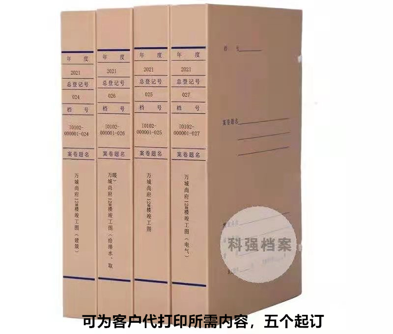 我廠生產(chǎn)的檔案盒防潮、防霉、不變質(zhì)、不褪色,大容量,堅(jiān)固耐用,文件存儲(chǔ)時(shí)間長(zhǎng),避光性好,紙質(zhì)堅(jiān)挺、韌性好,便于重要文件、圖片的保管一站式定制服務(wù),訂做各種顏色字,各種大小尺寸無(wú)酸紙,牛皮紙檔案盒;尺寸大小、文字印刷要求、材質(zhì)要求都可以按照客戶的要求和設(shè)計(jì)圖制作零元拿樣,免費(fèi)設(shè)計(jì);廠家直銷,批發(fā)價(jià),貨源充足,支持多規(guī)格定做,24小時(shí)發(fā)貨。